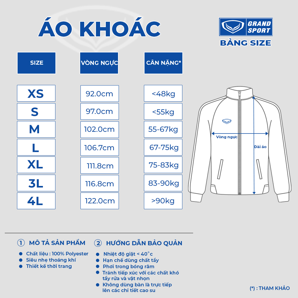 BẢNG SIZE ÁO KHOÁC