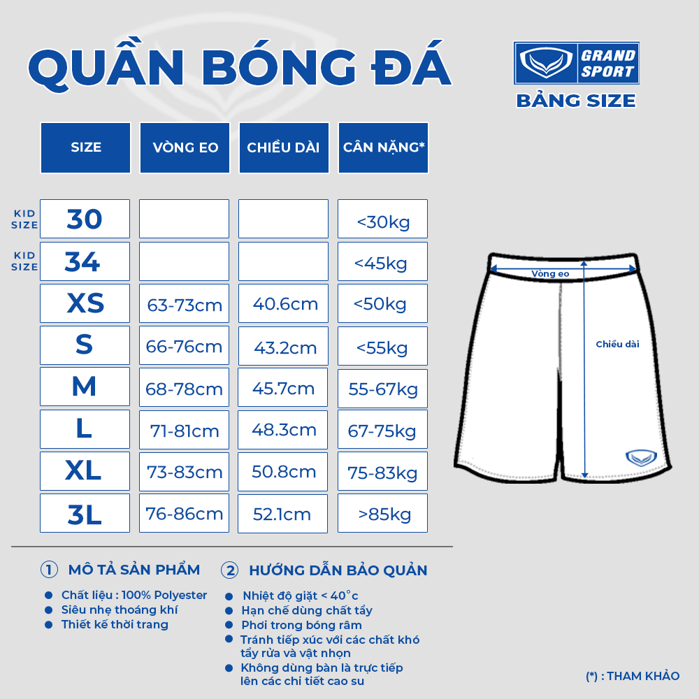 BẢNG SIZE Quần Thi Đấu Thủ Môn Đội Tuyển Việt Nam 2021-2022 Grand Sport Vàng